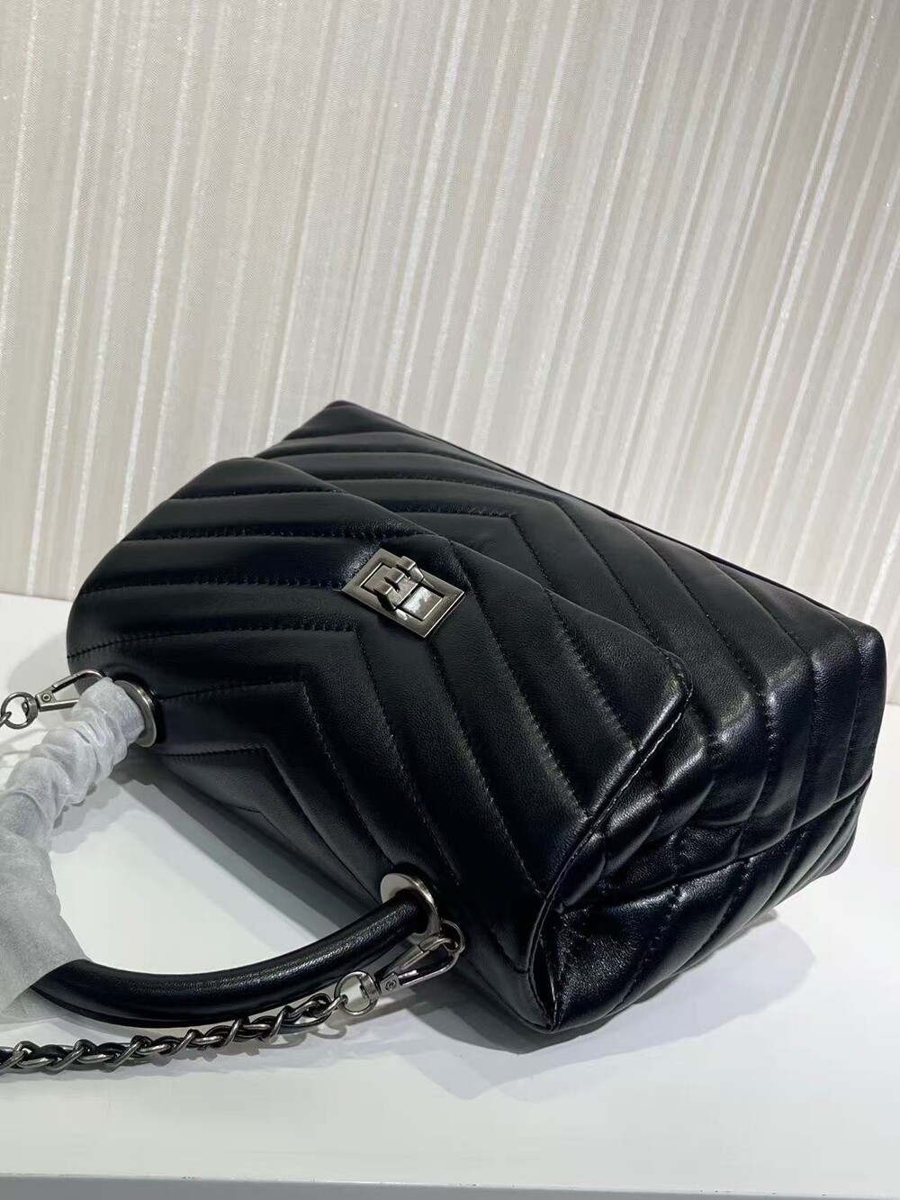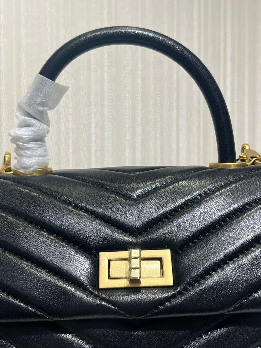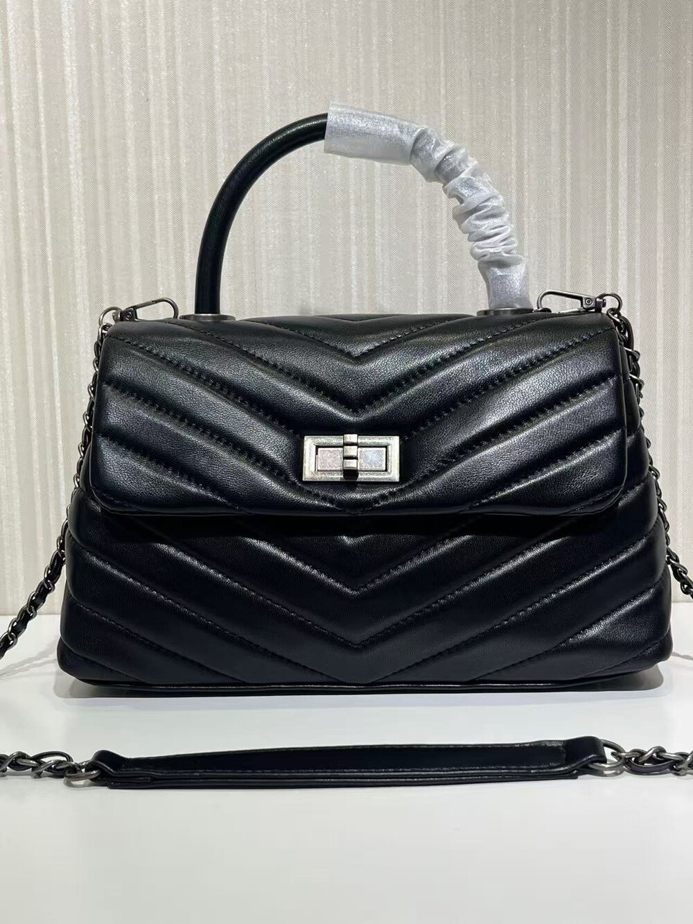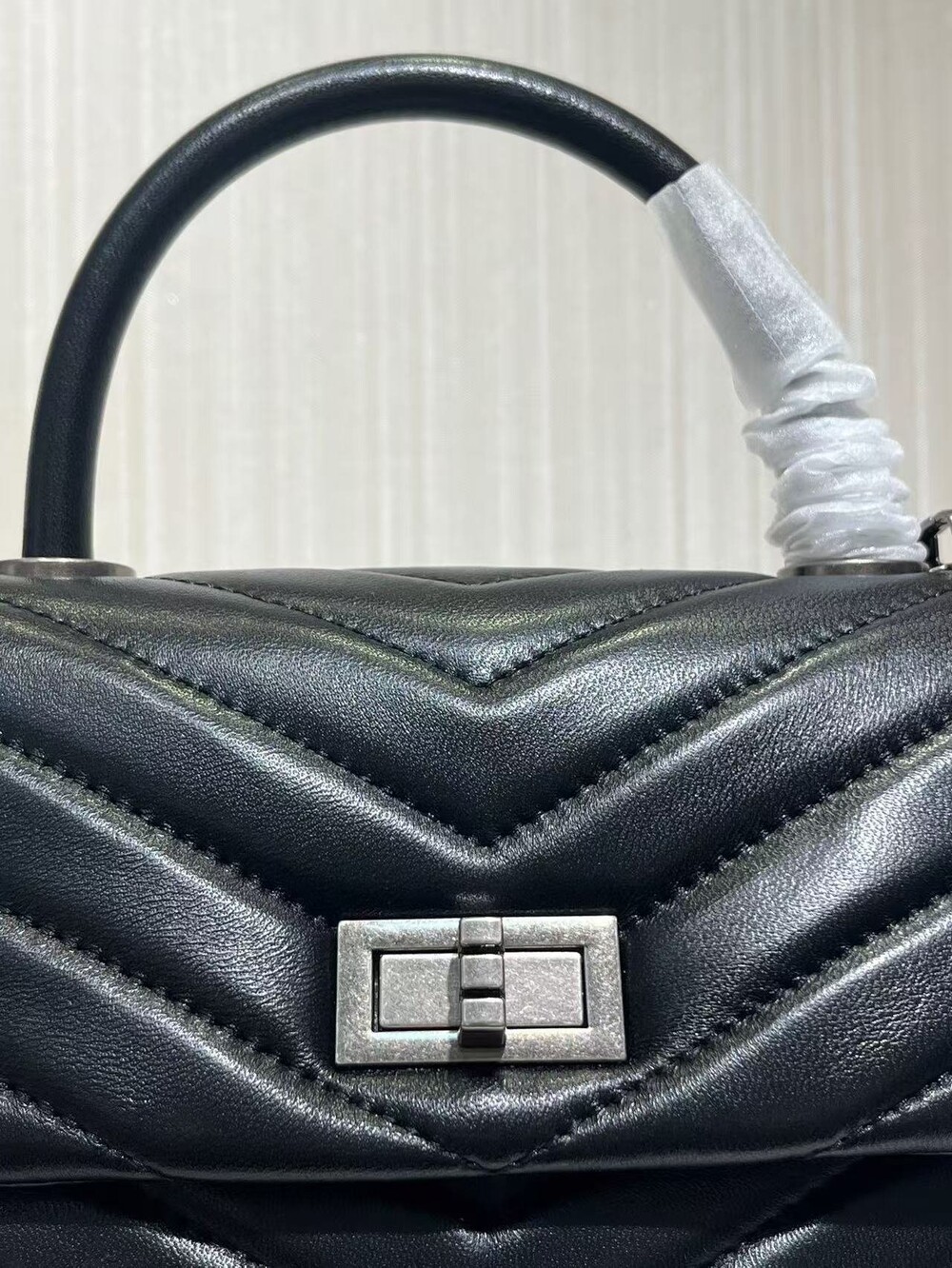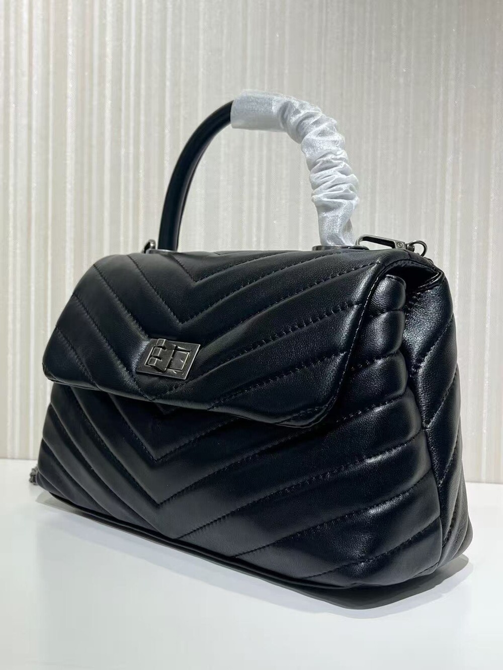 고급진 램스킨 핸들 토트백이에요.
