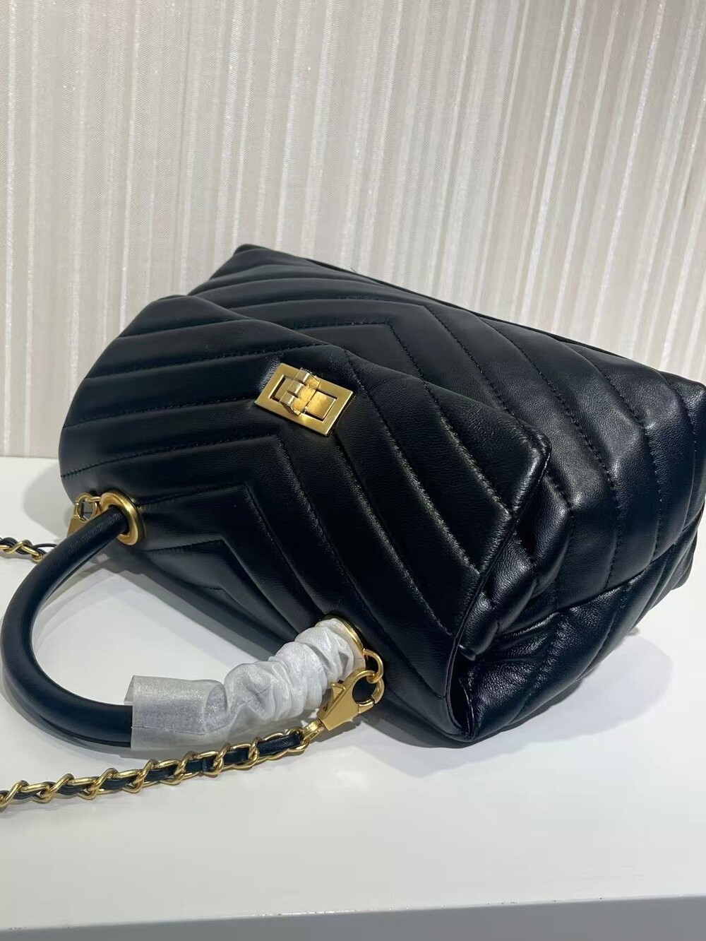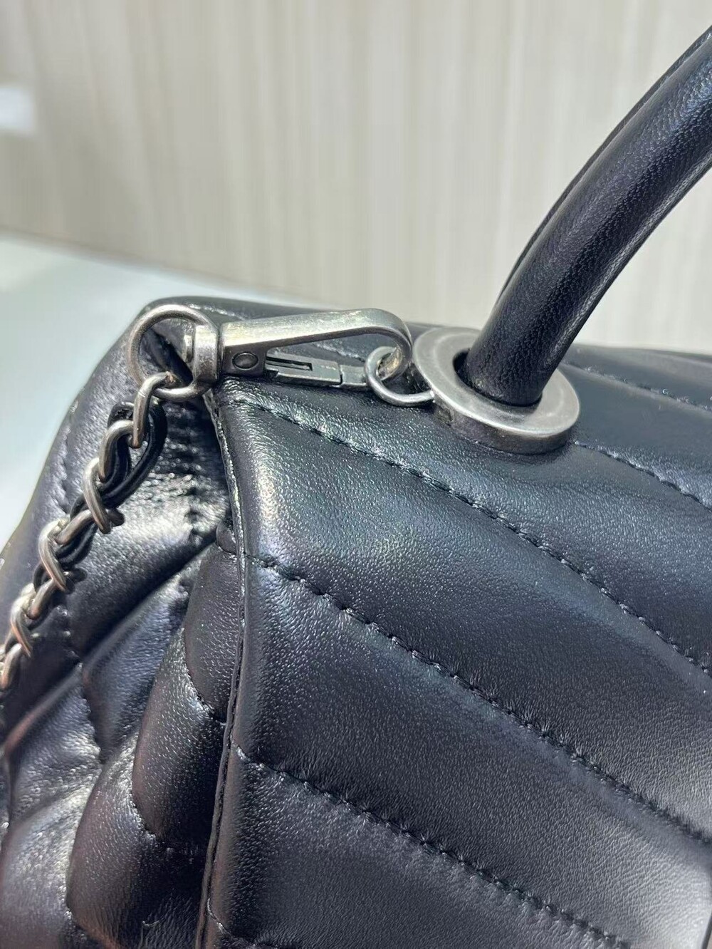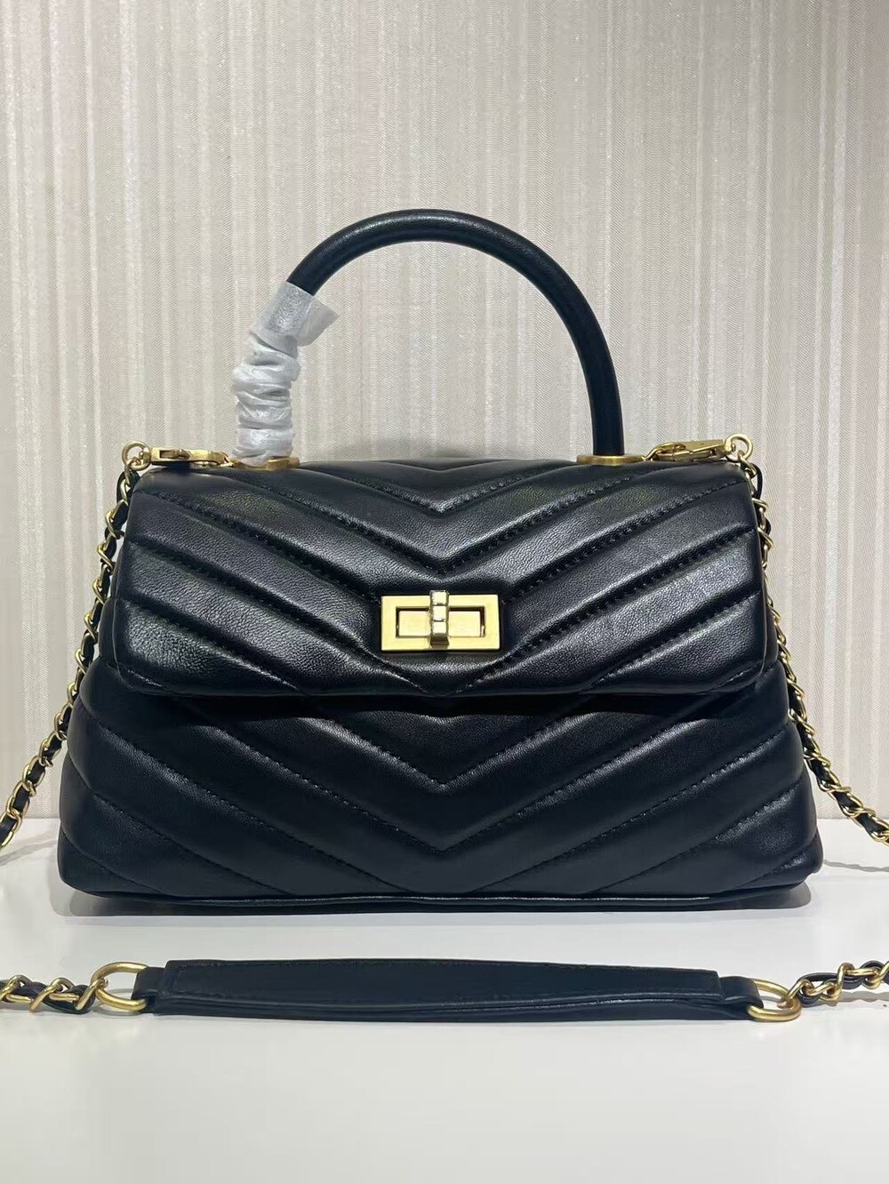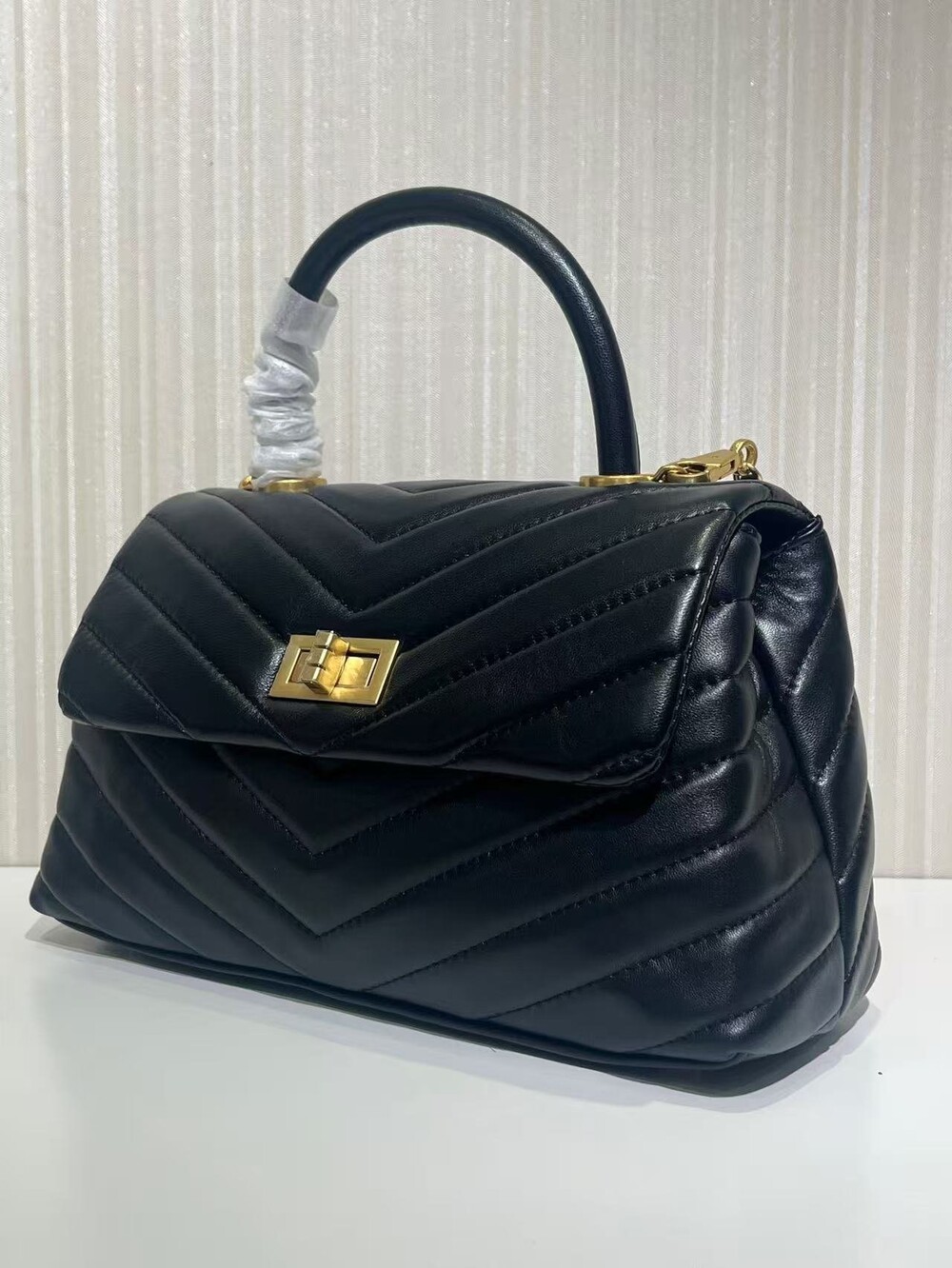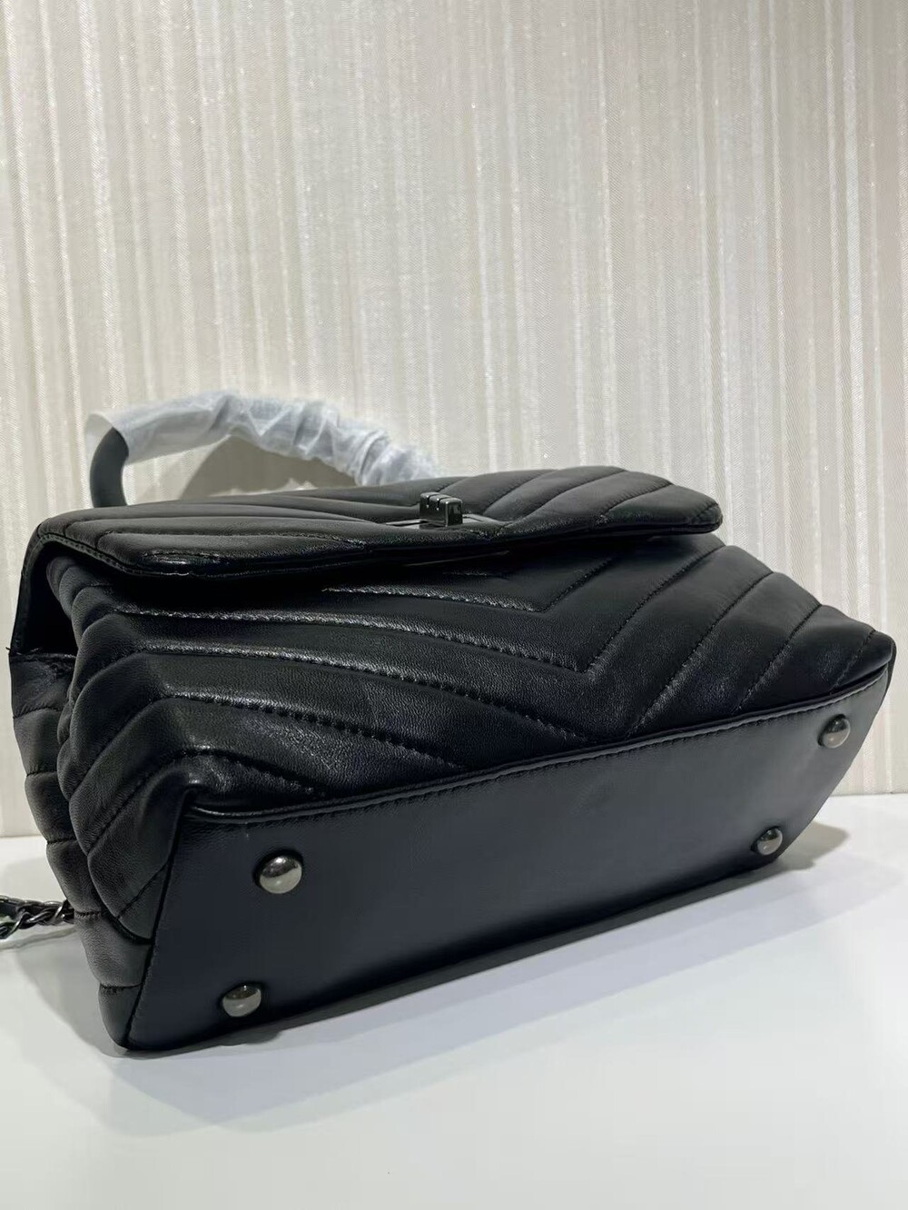 고급진 램스킨 핸들 토트백이에요.