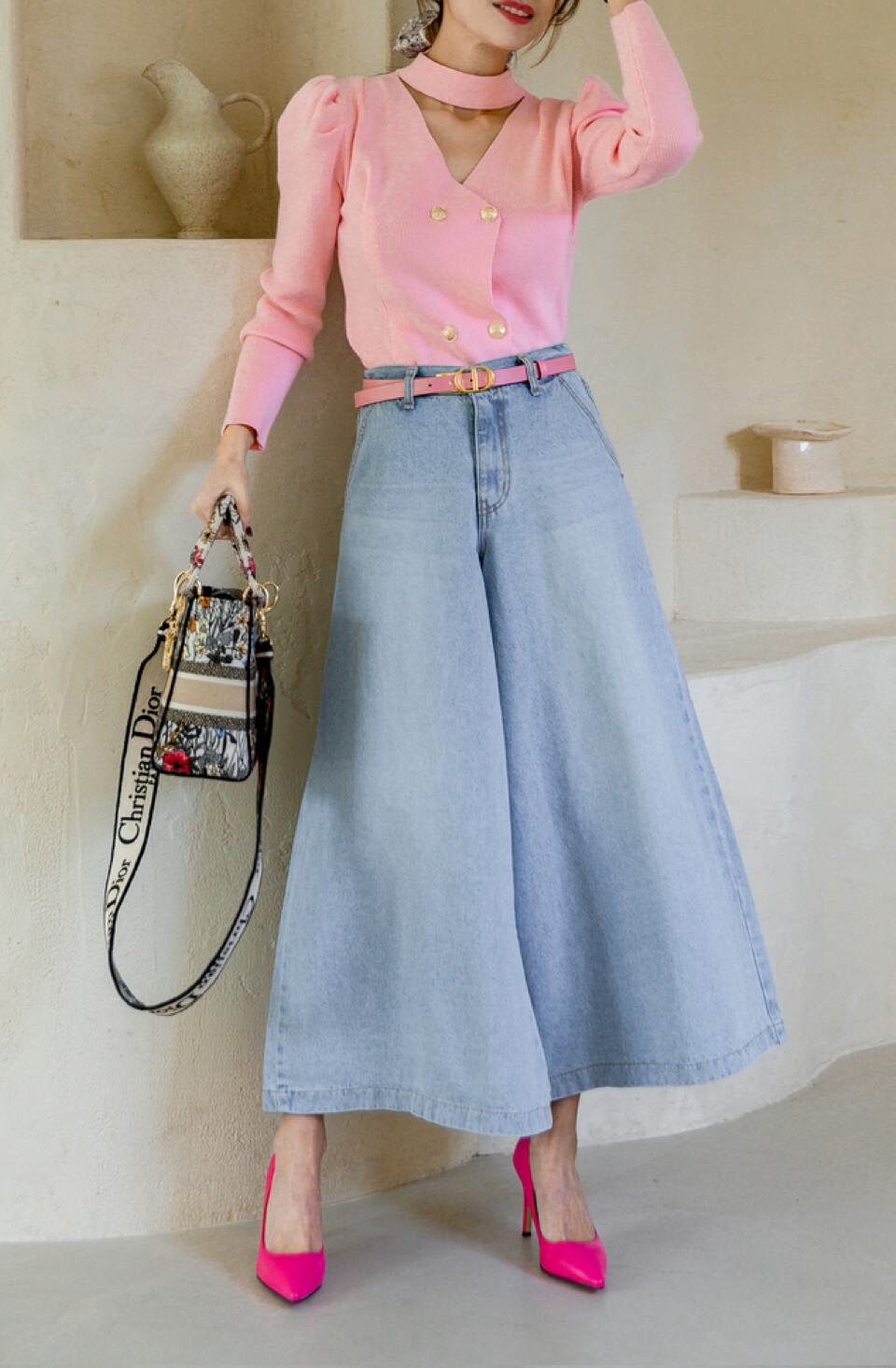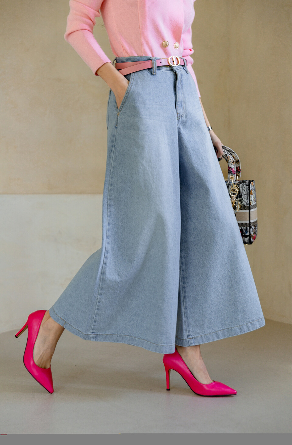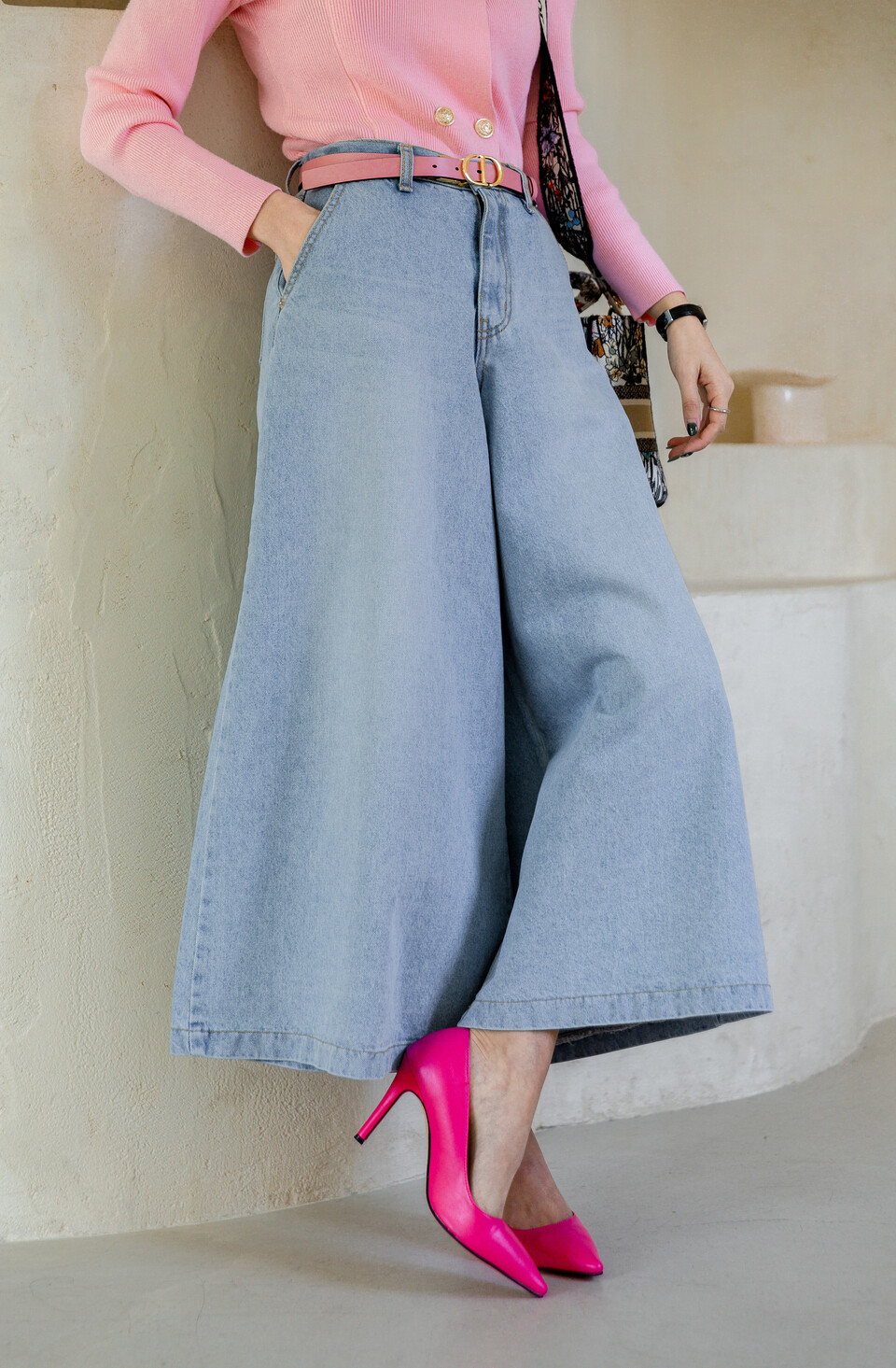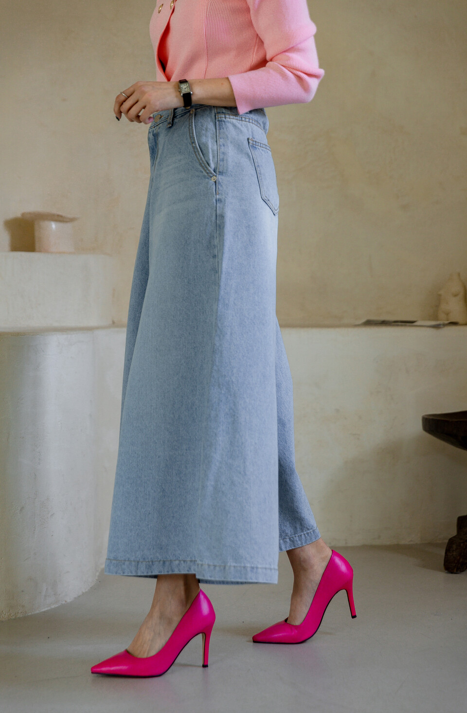 데님 롱 스커트 같은 착시가 이루어져요.