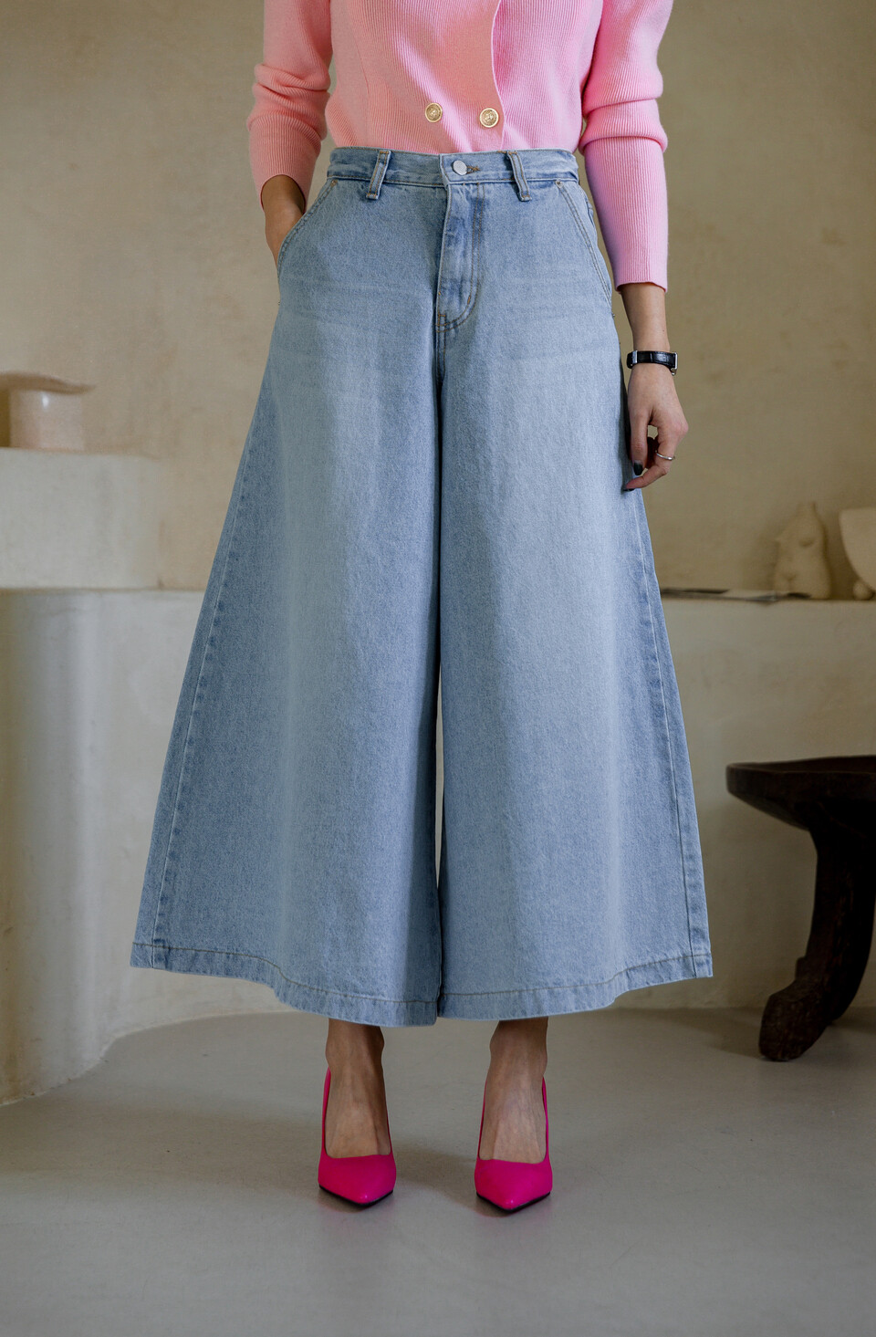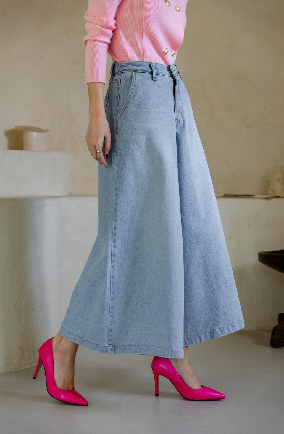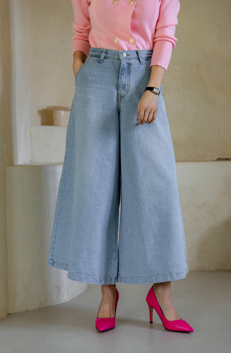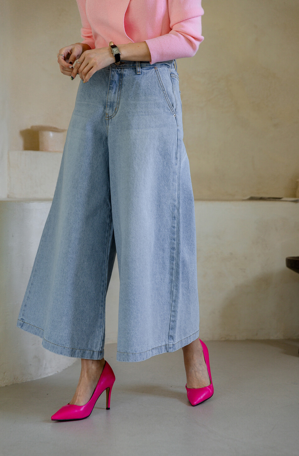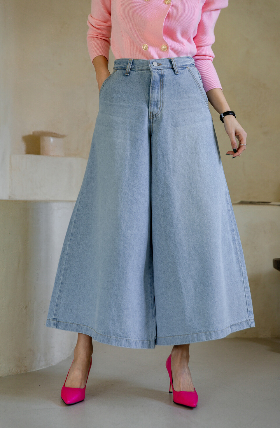 맨하튼 8부 와이드 스커트 팬츠