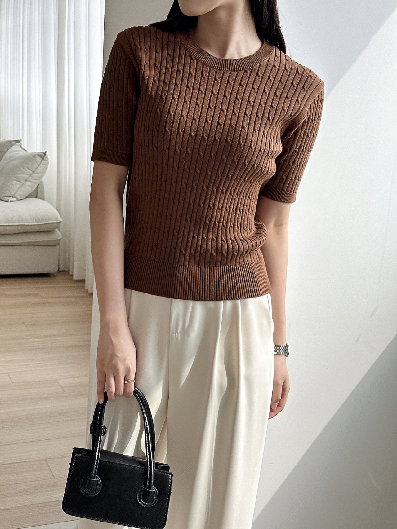 세로 꽈배기 짜임으로