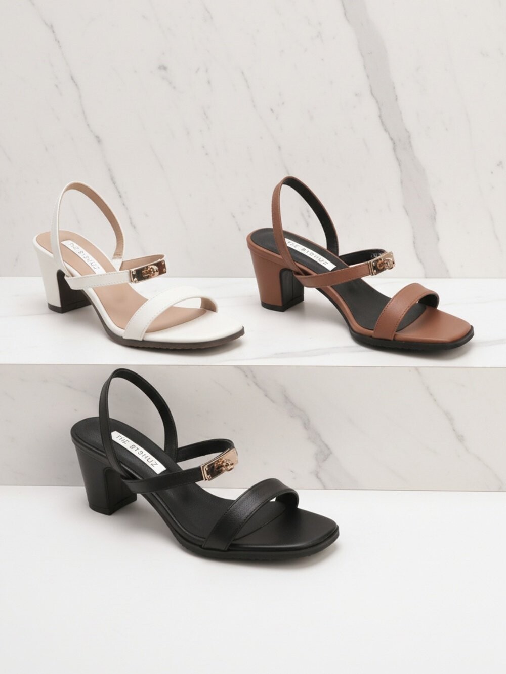 스퀘어 디테일의 샌들 슬링백