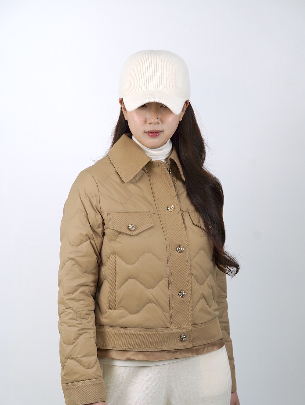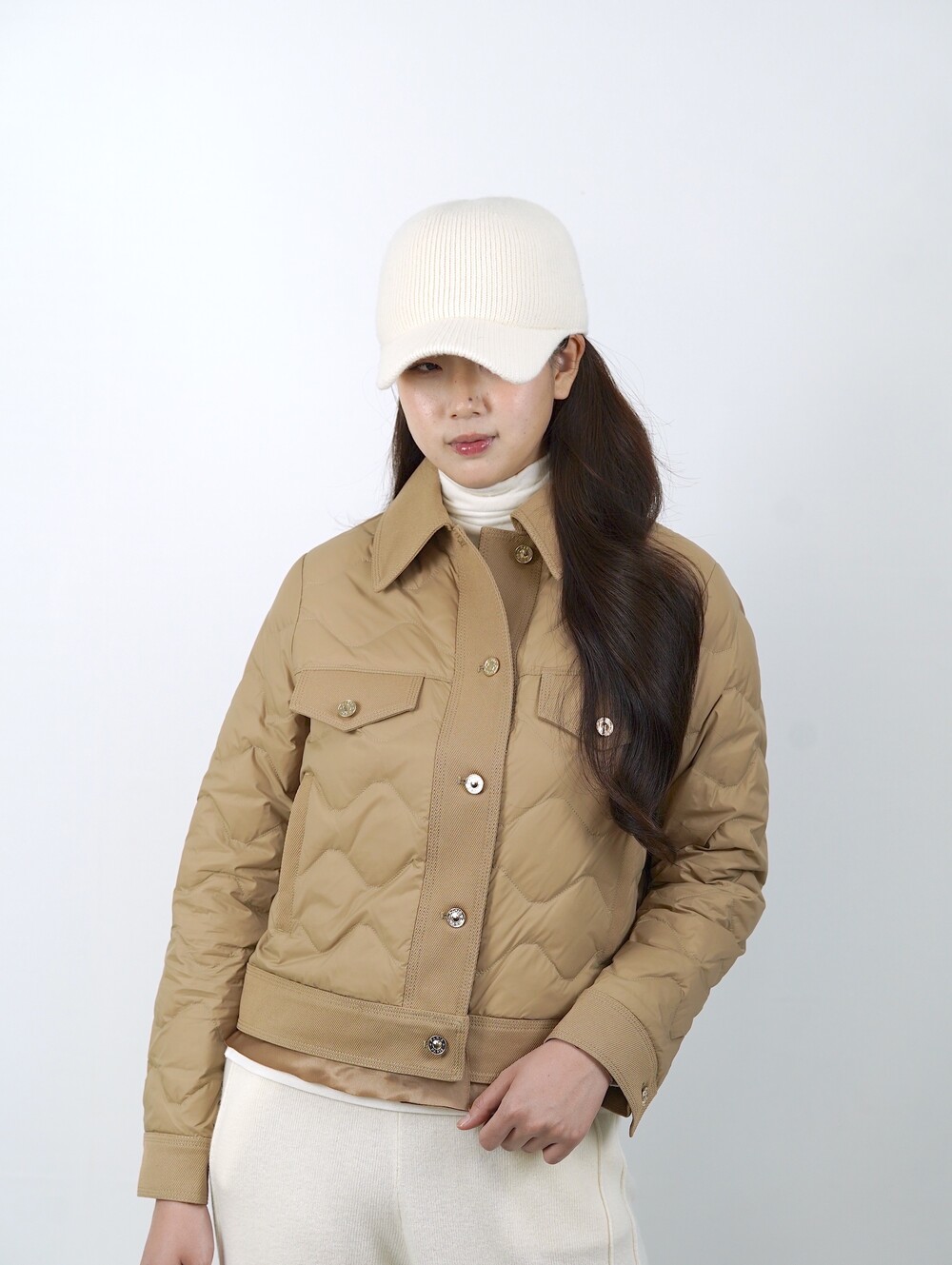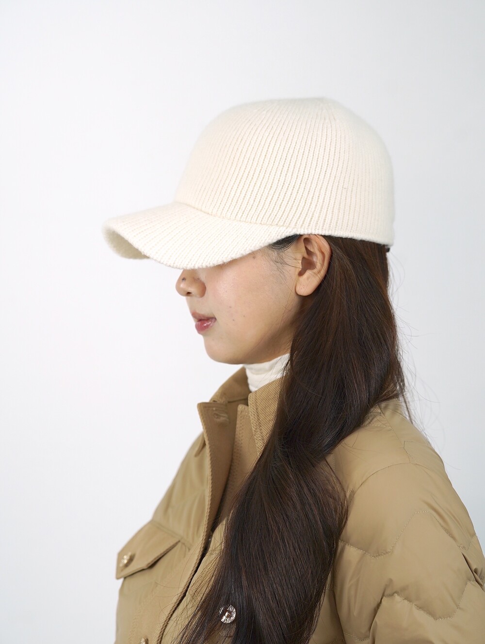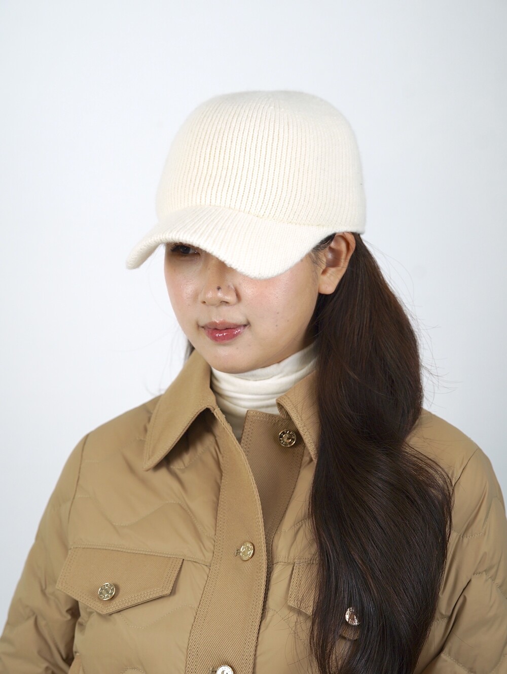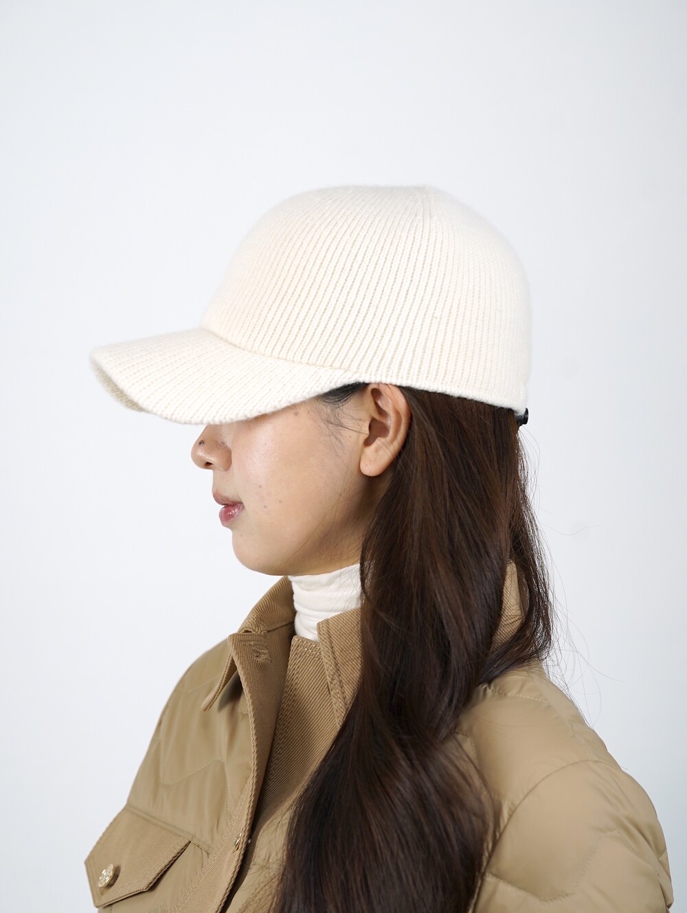 아이보리 색 니트 캡은