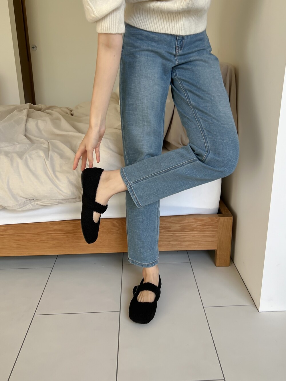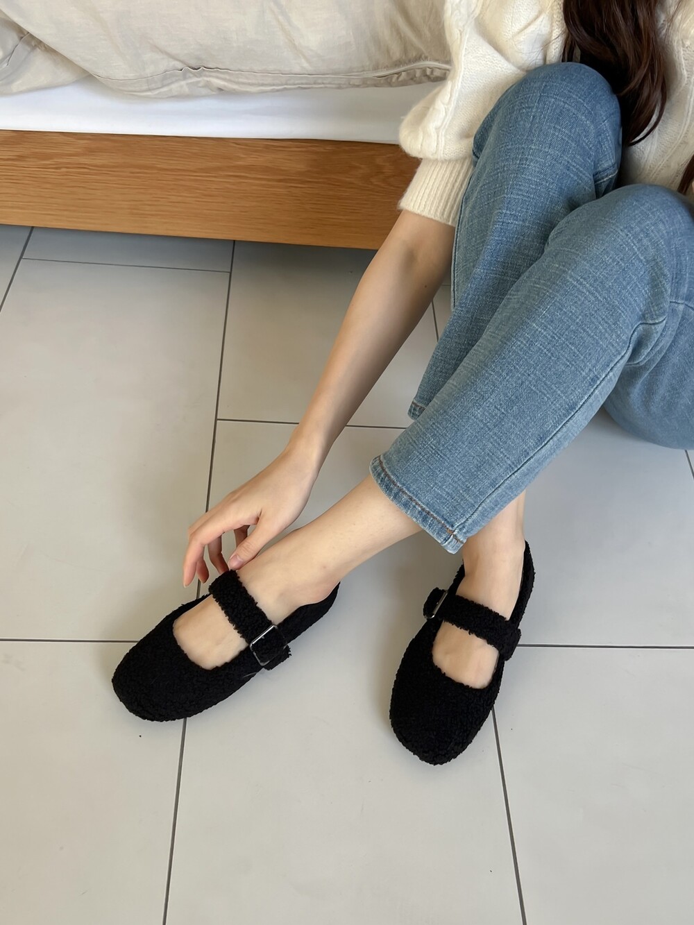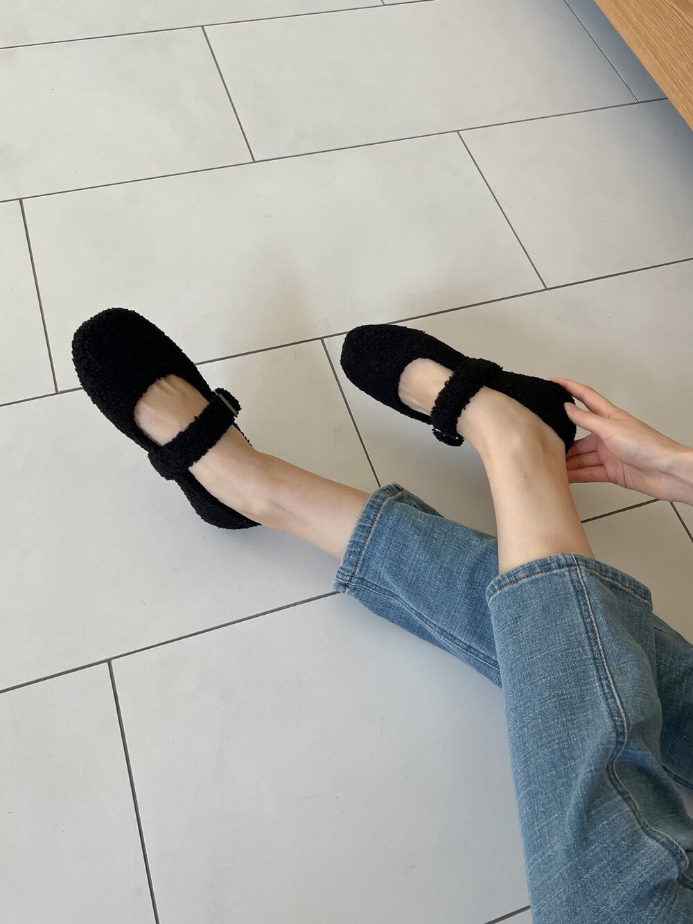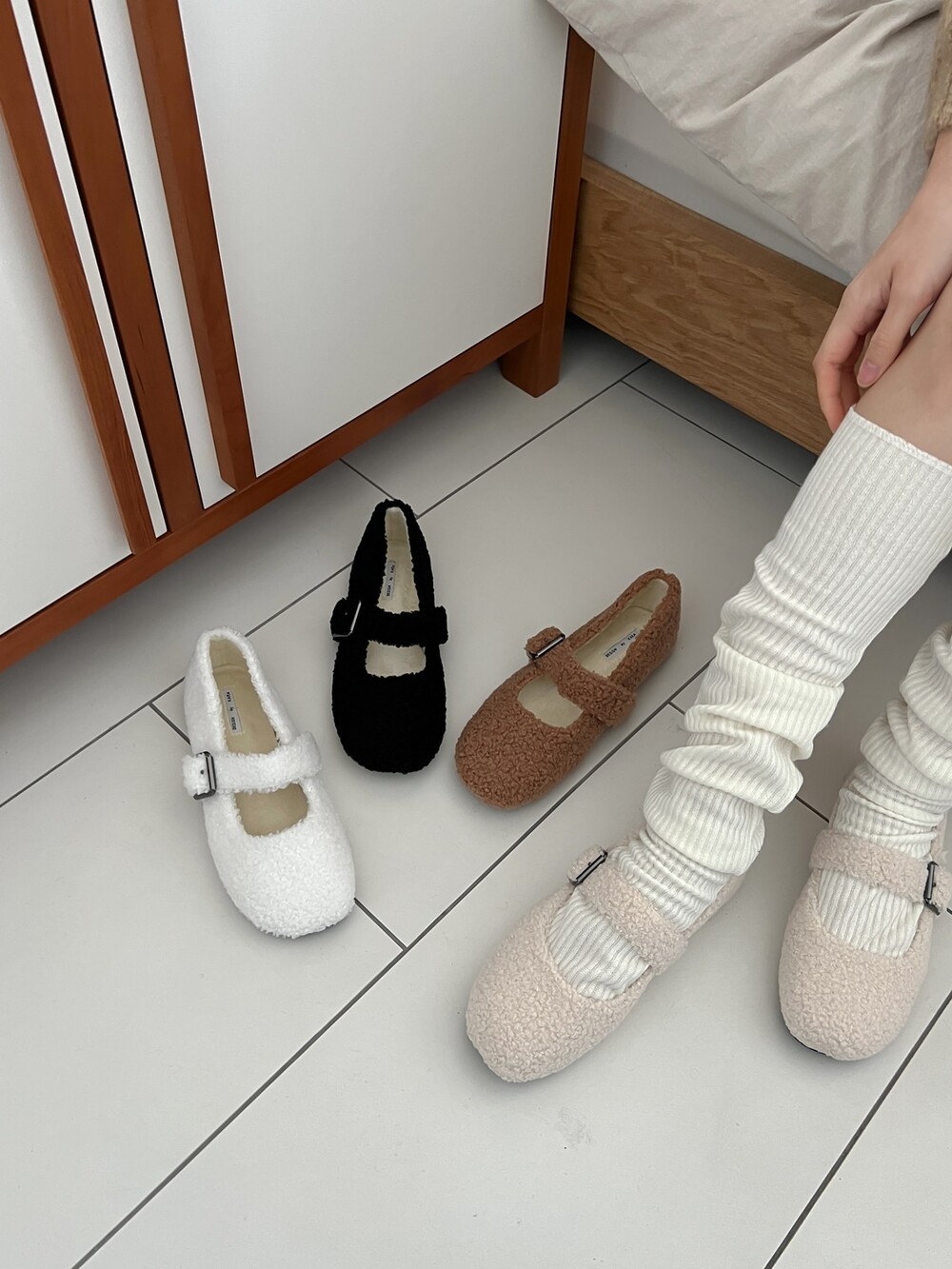 메리제인 디자인의 퍼 슈즈를