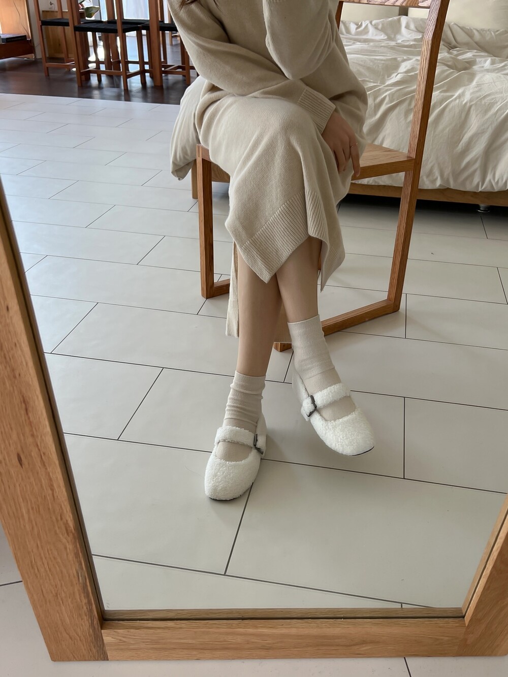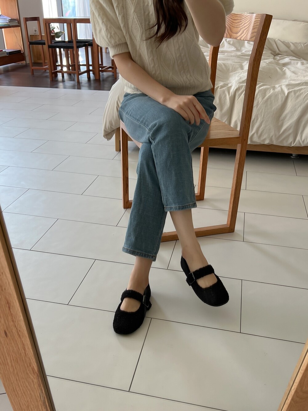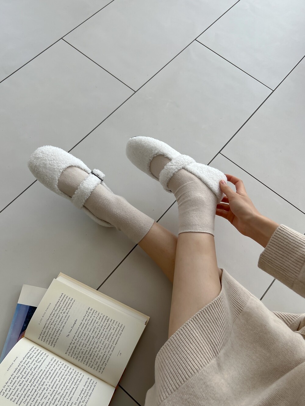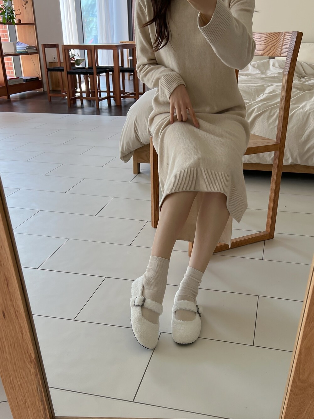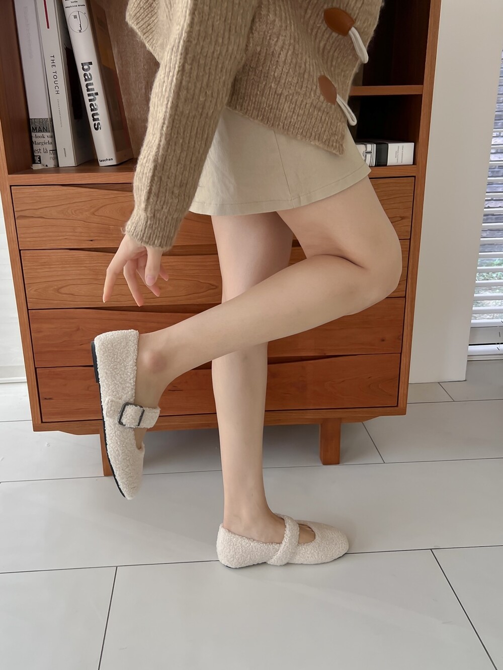 메리제인 디자인의 퍼 슈즈를